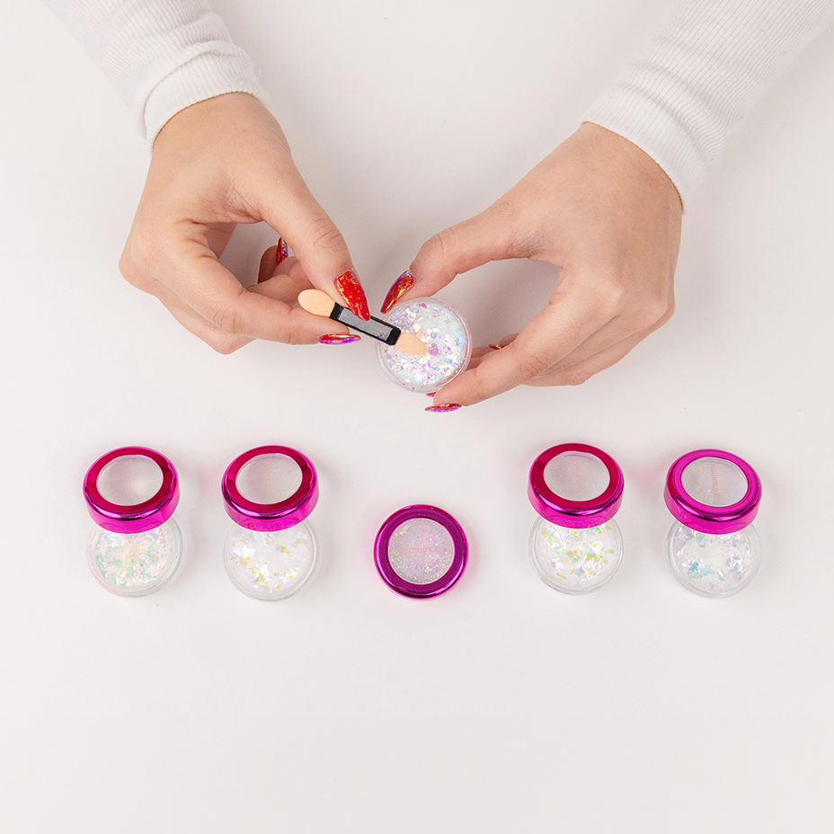 Then immediately use the included applicator brush to pick up the flakes and press them onto the nail surface.