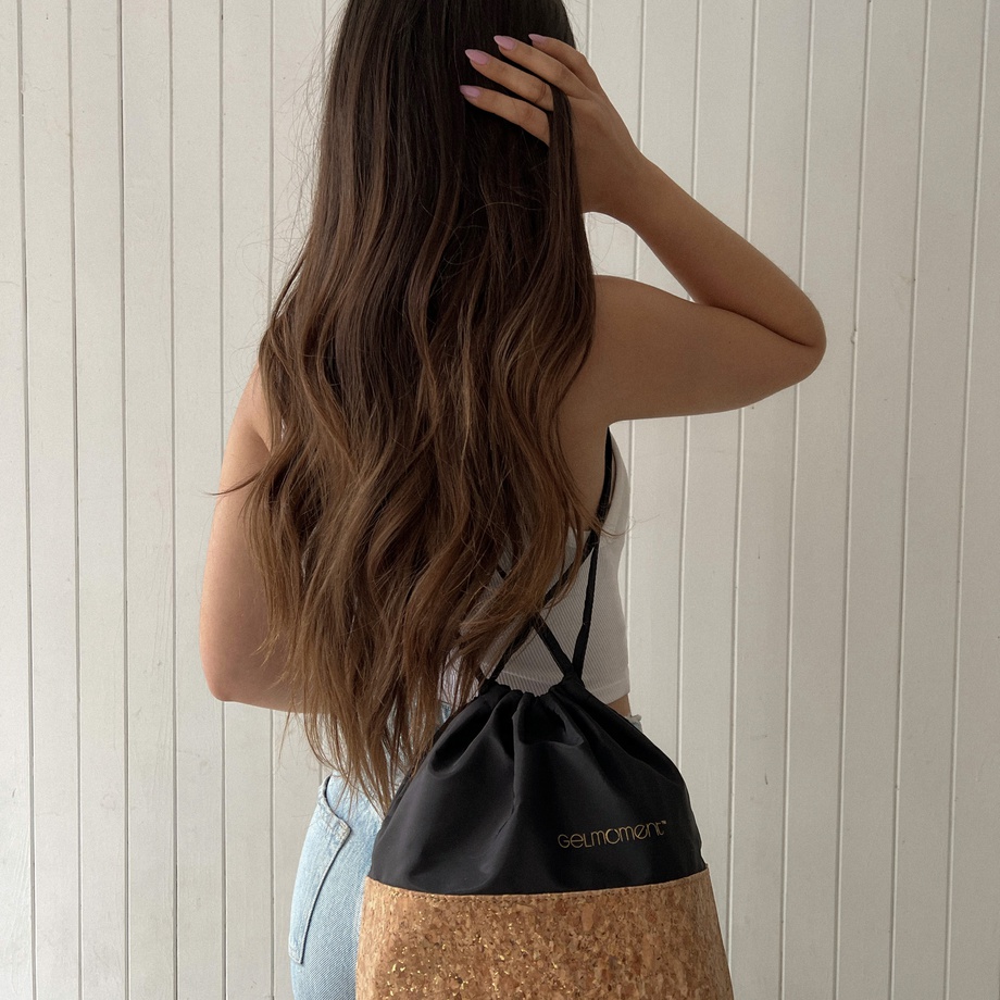 GelMoment’s Cork Drawstring Bag is as sturdy as it is stylish. Tote around your smaller essentials in this perfectly sized and uniquely designed drawstring bag. You have two colour schemes to choose from: cork base with multicolour speckles, pale pink vinyl upper body, and white GelMoment logo; or cork base with gold speckles, black vinyl upper body, and golden GelMoment logo.