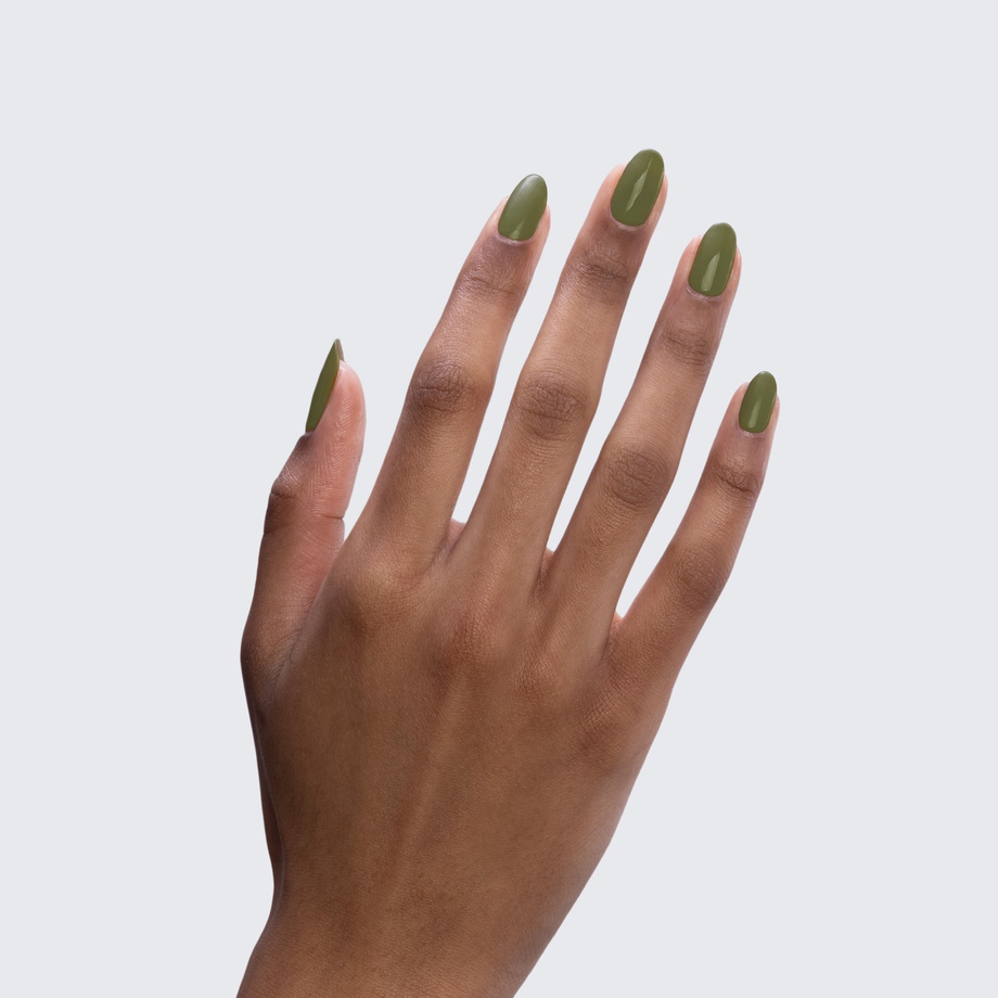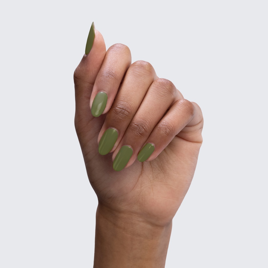 Take a walk in the woods with an olive-green manicure to match.
